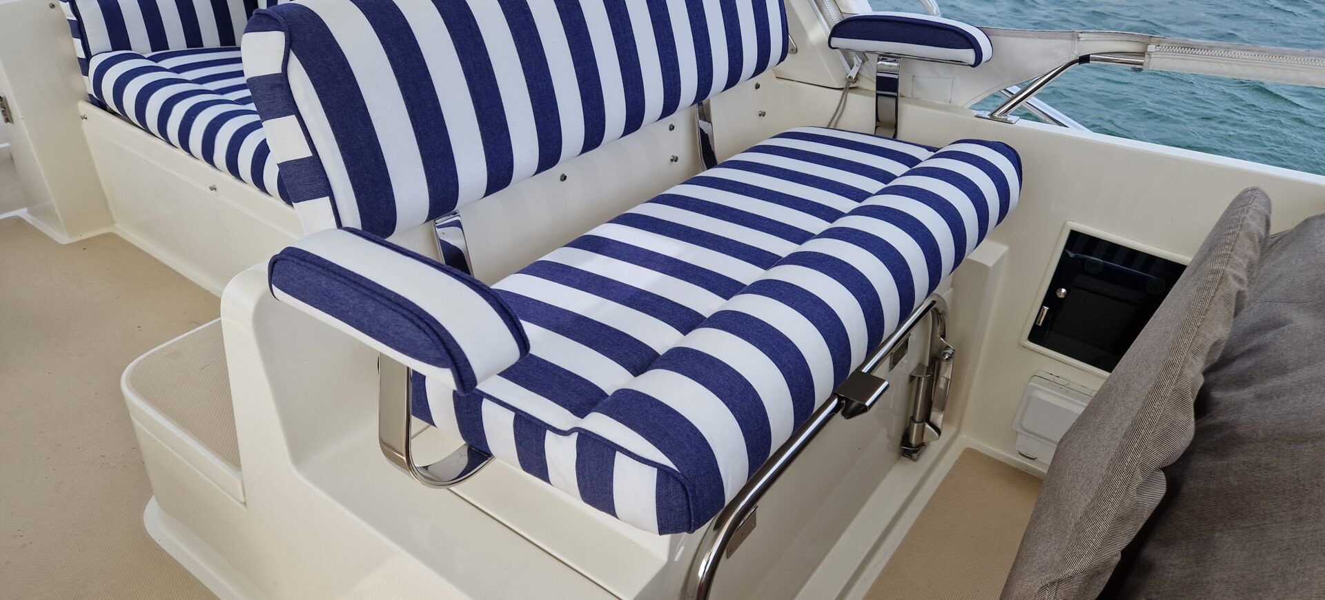 Whether you’re refitting a classic yacht or updating a family cruiser, we offer custom marine upholstery tailored to your boat and style. From saloon seating and cockpit cushions to cabin mattresses and sun pads, we design and build everything in-house to ensure the right fit and finish.